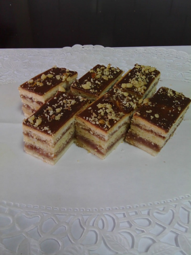 Kore od suvog grožđa, jabuka, višanja i oraha, čokoladni fil i žuti fil sa pečenim orasima.